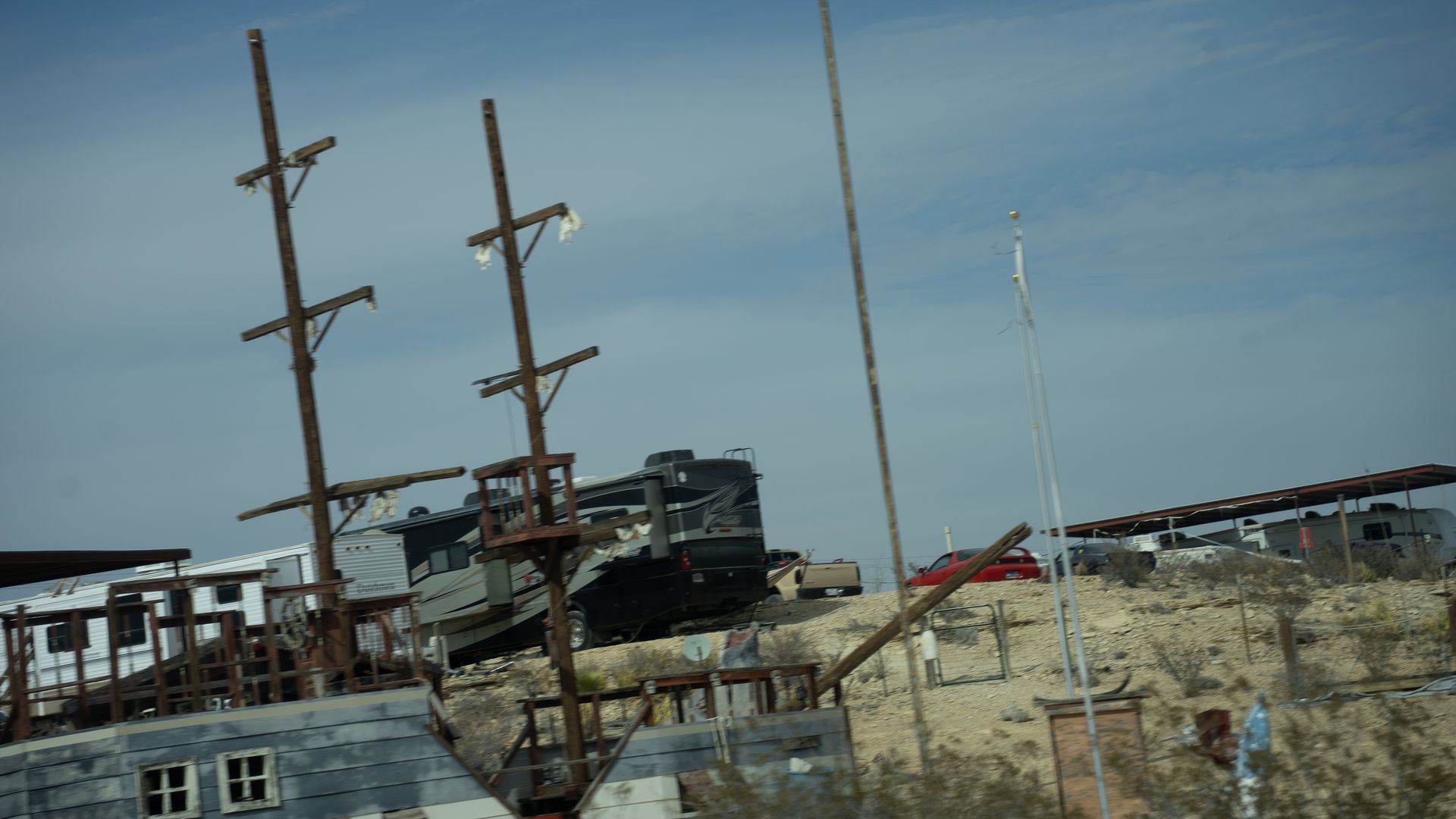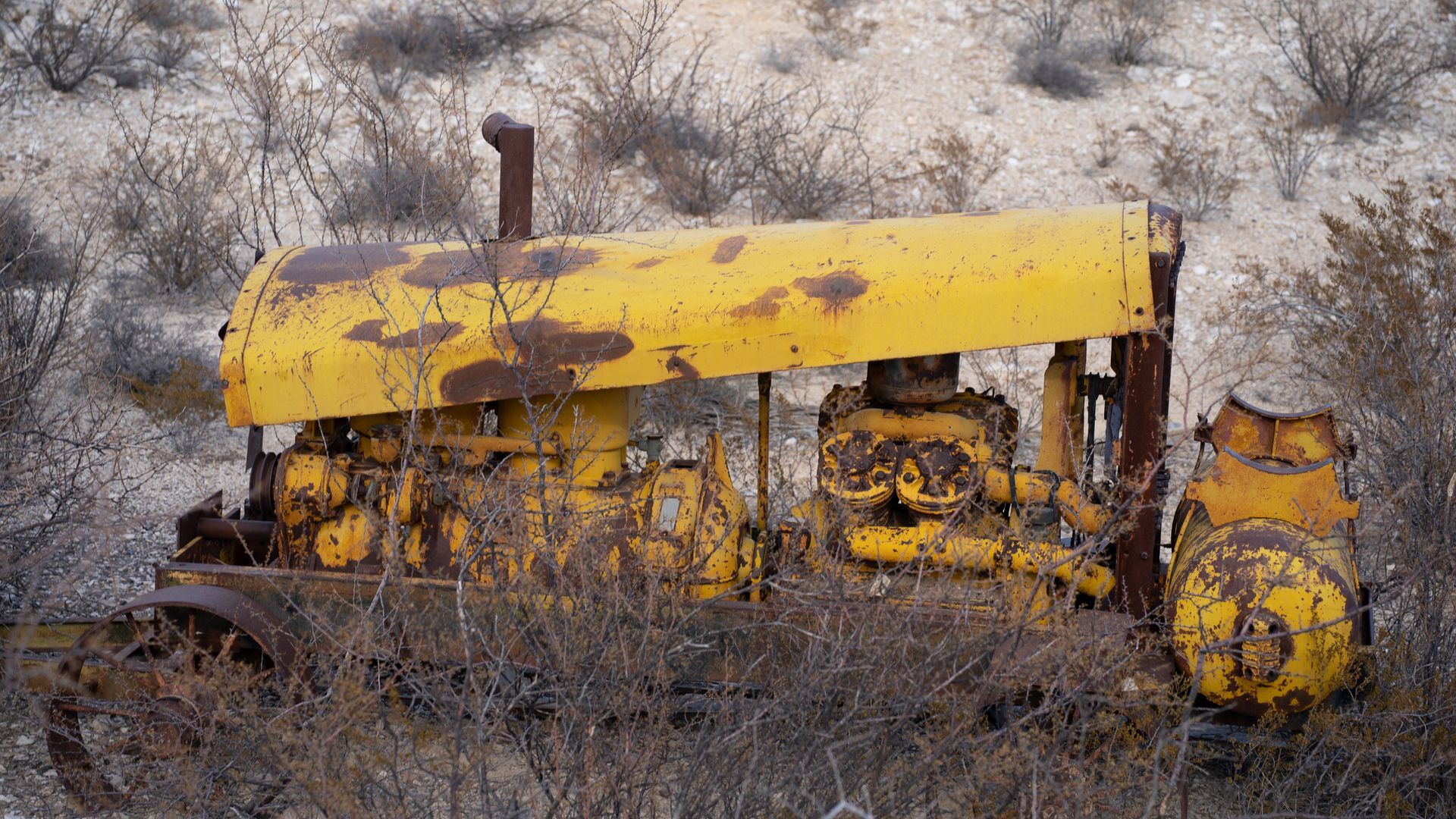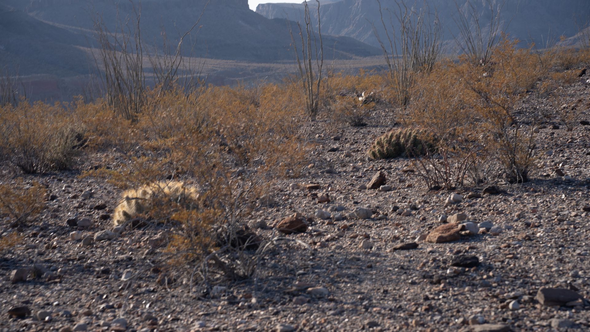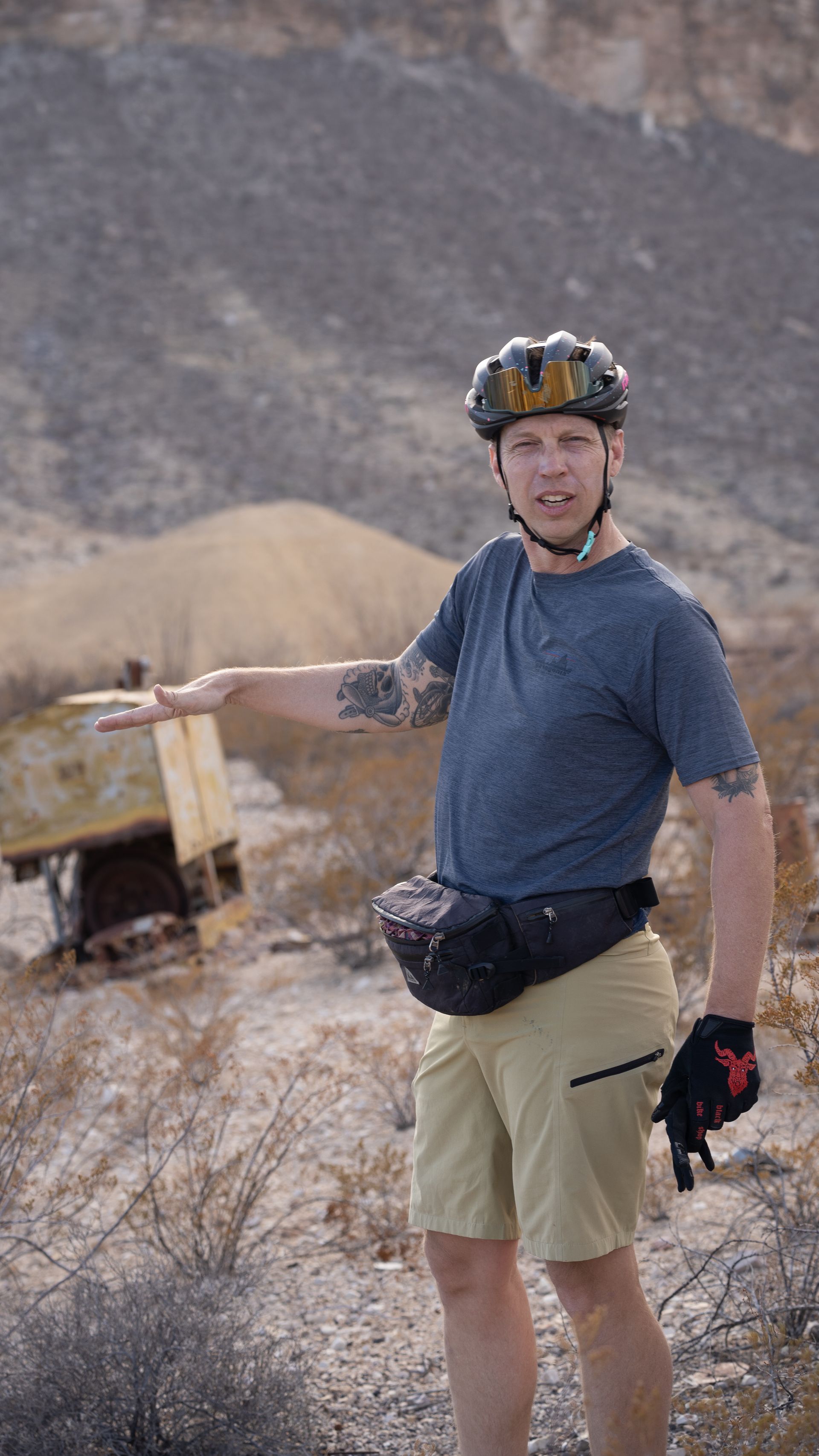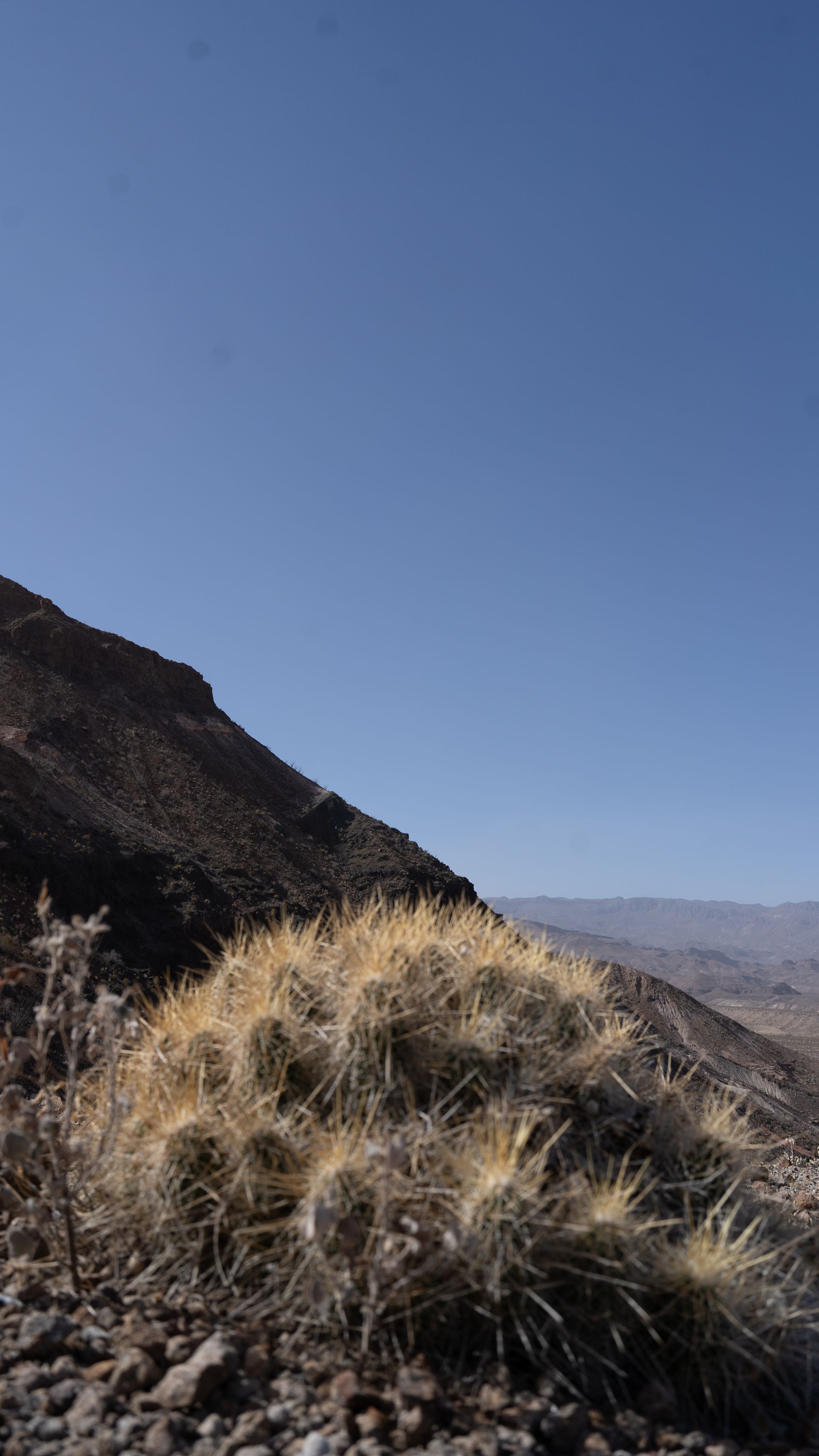 The Desert does not want you there. It's hot, arid, pointy. It sucks all moisture from you even when you're not sweating. Some of the animals want to eat you and others want to pick your leftover bones. The mountains are loose and steep. Shade is sparce and the February sun can be offensive. Remnants of the past are rusted and ruined, leaving only piecemeal memories in the hands of the narrator. It's a menace.