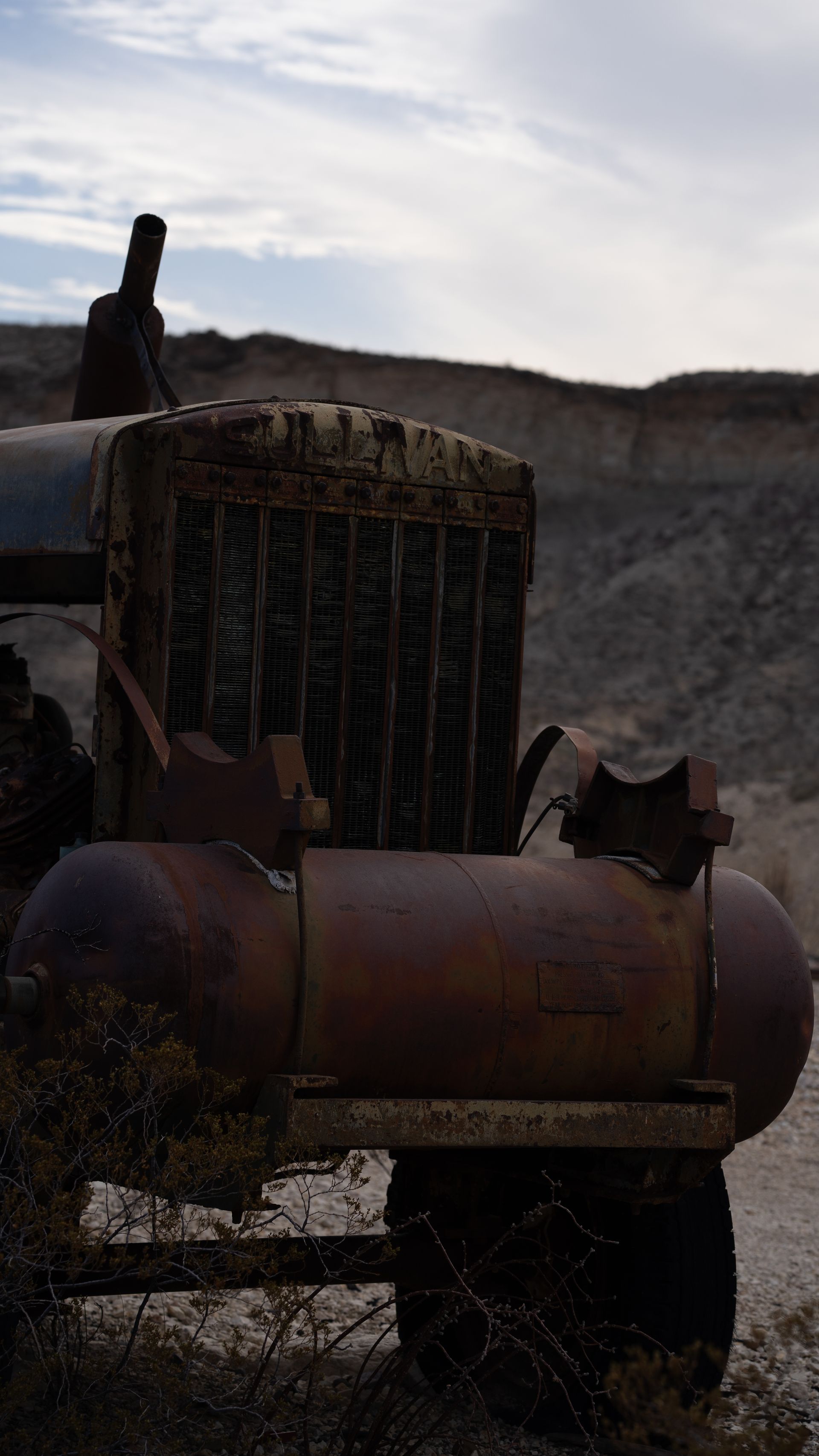 Conrad, Vince and I suited up right from the ranger station after checking in and went on a decent post 8.5 hour drive 16 mile ride, to a sweet defunct mine where the dead, man-made machines lay waste to the living desert and provide colorful contrast for our eyes to enjoy. The chome certainly popped a little brighter out there. It was really crazy finding a tank in the middle of it all and seeing a MFG stamp of Kewanee, IL. Kewanee is as small town three hours from Madison and 25 minutes from the beautiful Quad Cities. When you're out there looking at all this stuff, it's fun to think about just how in the heck the people got that incredibly heavy machinery way out in the desert. I wonder why after everything went belly up they didn't haul it out. The cactus and bush pay no mind to the twisted metal. It's like they're saying, "We told you so. We warned you not to stay too long and now look at you." The Earth will always win.
